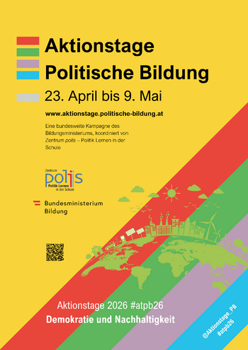 Die Aktionstage Politische Bildung sind die traditionsreichste Kampagne zur Politischen Bildung in Österreich und finden jährlich von 23. April (Welttag des Buches) bis zum 9. Mai (EUropatag) statt. Thematischer Fokus 2026 ist Demokratie und Nachhaltigkeit.